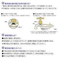備考 | 水道工事、取り付け工事は指定水道工事店に依頼して下さい。 蛇口や配管内の水の凍結が考えられる場合は、破損のおそれがありますので、 地域・気候に応じた凍結防止対策を行って下さい。 蛇口は、固定コマ式(寒冷地仕様)を使用して下さい。 |
