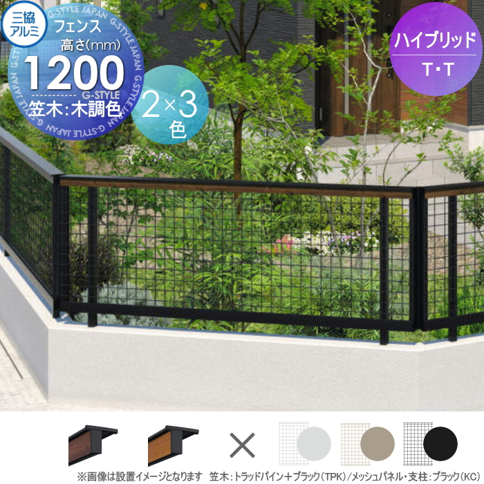 商品名 | 形材フェンス 三協アルミハイブリッド T・T/ティー・ティー W20 フェンス本体(笠木・下桟+メッシュパネル) 木調色 H1200 TGF-20W・TGF-MP-12 境界 屋外 アルミ 形材フェンスガーデン DIY 塀 壁 囲い |