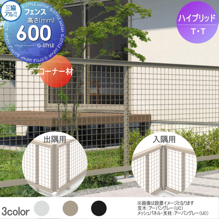 商品名 | 形材フェンス 三協アルミハイブリッド T・T/ティー・ティー フェンス用 コーナー材(1本) H600 TGFC-D-06・TGFC-V-06 境界 屋外 アルミ 形材フェンスガーデン DIY 塀 壁 囲い |