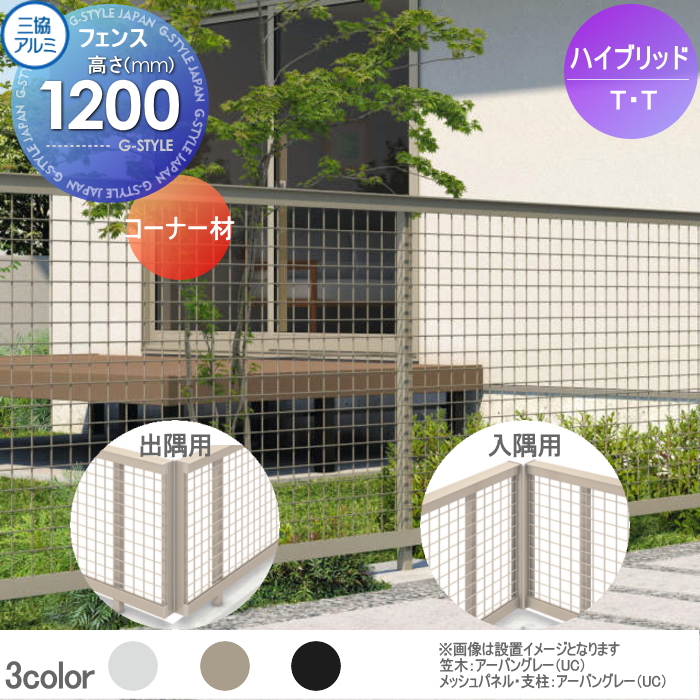 商品名 | 形材フェンス 三協アルミハイブリッド T・T/ティー・ティー フェンス用 コーナー材(1本) H1200 TGFC-D-12・TGFC-V-12 境界 屋外 アルミ 形材フェンスガーデン DIY 塀 壁 囲い |