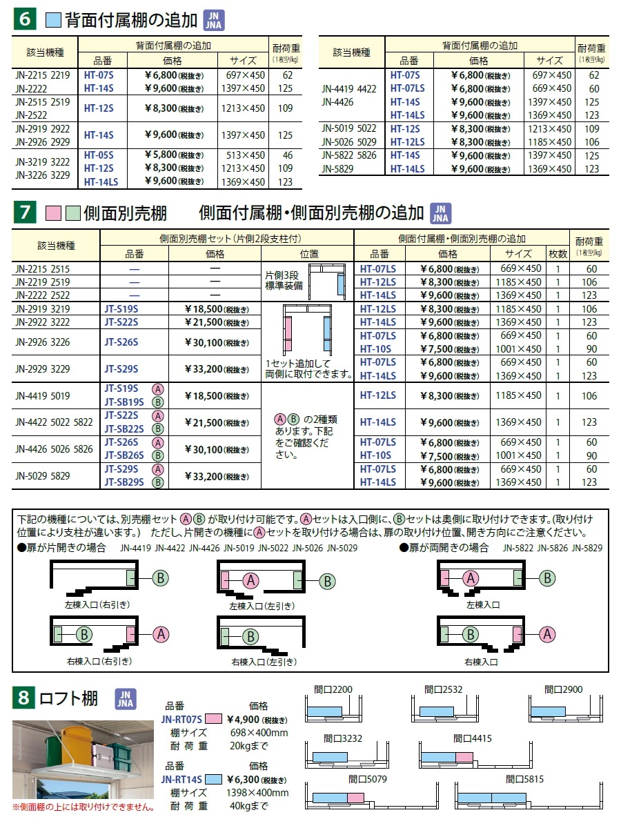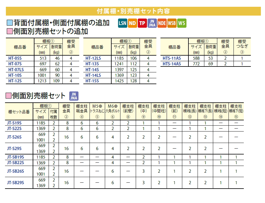 商品名 | タクボ Mrトールマン オプション JT-SB19S JN・JNAシリーズ 側面別売り棚セット(片側2段支柱付) |