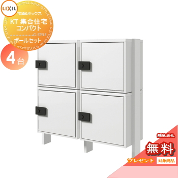 セット内容 | 宅配ボックスKT 本体 コンパクト×4台 ポールセット 連棟端部用 2本入り×1セット ポールセット 連棟中間用 1本入り×1セット |
