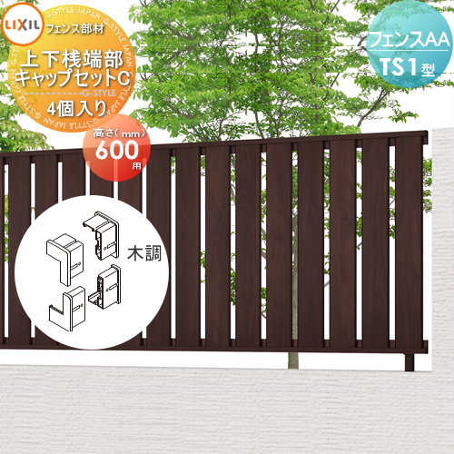 商品名 | フェンスAA TS1型用 【H600 上下桟端部キャップセットC 木調(4個入り)】 境界 屋外 アルミ 形材フェンスガーデン DIY 塀 壁 囲い |