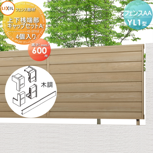 商品名 | フェンスAA YL1型用 【H600 上下桟端部キャップセットA 木調(4個入り)】 境界 屋外 アルミ 形材フェンスガーデン DIY 塀 壁 囲い |
