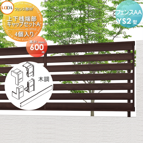 商品名 | フェンスAA YS2型用 【H600 上下桟端部キャップセットA 木調(4個入り)】 境界 屋外 アルミ 形材フェンスガーデン DIY 塀 壁 囲い |