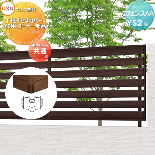 商品名 | フェンスAA YS2型用 【下桟すきまカバー (60用) コーナー部品】 境界 屋外 アルミ 形材フェンスガーデン DIY 塀 壁 囲い |