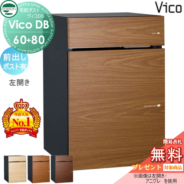 商品名 | 宅配ボックス ヴィコDB 60+80 ポスト有り 前出し 木調色 3カラー 左開きタイプ スペーサー無し 埋め込み スタンド 置き型 門柱 対応 おしゃれ |