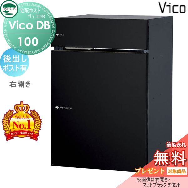 商品名 | 宅配ボックス ヴィコDB 100 ポスト有り 後出し マットブラック 右開きタイプ 埋め込み スタンド 置き型 門柱 対応 おしゃれ 後ろ出し |
