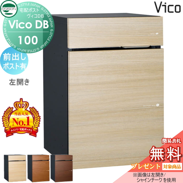 商品名 | 宅配ボックス ヴィコDB 100 ポスト有り 前出し 木調色 3カラー 左開きタイプ スペーサー無し 埋め込み スタンド 置き型 門柱 対応 おしゃれ |