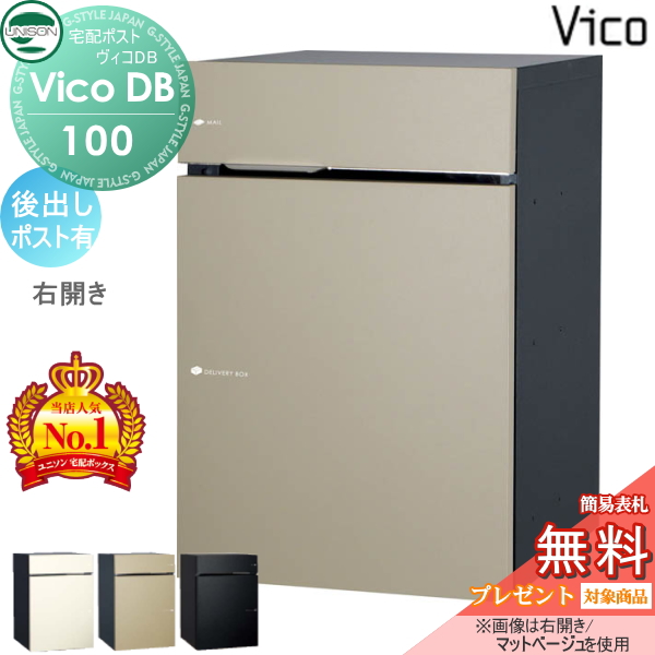 商品名 | 宅配ボックス ヴィコDB 100 ポスト有り 後出し マットカラー 3色 右開きタイプ スペーサー無し 埋め込み スタンド 置き型 門柱 対応 おしゃれ 後ろ出し |