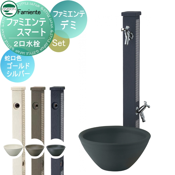 商品名 | 【ユニソン ファミエンテスマート2口 左右仕様+陶芸ポット デミ+蛇口フラワー2個 セット】 おしゃれ かわいい ガーデニング 庭まわり 屋外 水道 水廻り |