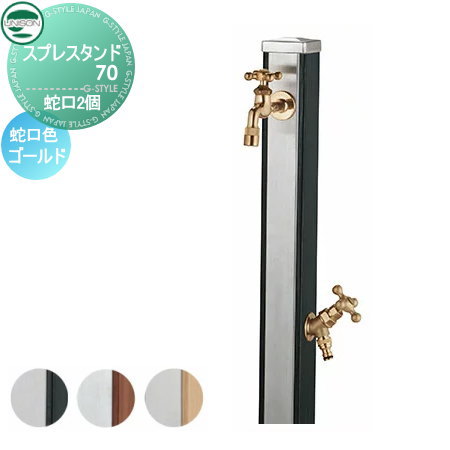 商品名 | 【スプレスタンド70 木目調 蛇口ふたつタイプ 蛇口ゴールド 本体 3color】 おしゃれ かわいい 蛇口 ガーデニング 庭まわり 屋外 水道 水廻り |