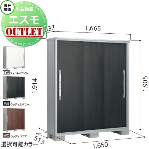 商品名 | 【訳ありアウトレット品】 物置 収納 エスモ 一般型 ESF-1605A サイズ:約 幅165cm×奥行52cm×高さ190cm ティントホワイト(TW)・ウッディココア(WC)・ウッディエボニー(WE) ヨドコウ ヨド物置 淀川製鋼 収納庫 屋外 小型物置 倉庫 |