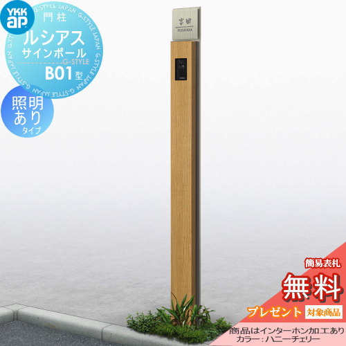 商品名 | ルシアス サインポール B01型 照明ありタイプ インターホン加工あり 機能門柱 機能ポール LED 一戸建て用 屋外 一体型セット |