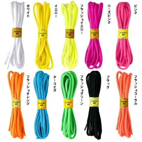 1足(2本)セット 抗ウイルス加工 オーバルシューレース (楕円型) 6mm幅 10色のカラーバリエーション