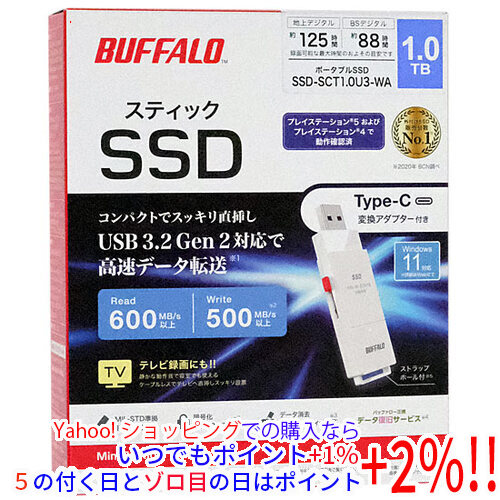 BUFFALO バッファロー スティック型外付けSSD SSD-SCT1.0U3-WA 1TB ホワイト