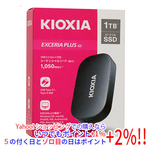 【商品名:】キオクシア EXCERIA PLUS G2 SSD-PKP1.0U3G2-B ブラック / 【商品状態:】新品です。 / 【検索用キーワード:】≪即納≫ EXCERIA PLUS G2 SSD-PKP1.0U3G2-B [ブラック] / 【型番:】 EXCERIA PLUS G2 SSD-PKP1.0U3G2-B [ブラック] / 【仕様:】 [スペック]/ 容量 1000 GB/ インターフェイス USB/ タイプ BiCS FLASH/ 設置タイプ 外付け(ポータブル)/ / [パフォーマンス]/ 読込速度 1050 MB/s/ 書込速度 1000 MB/s /