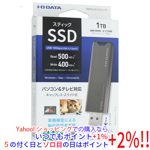 【商品名:】I-O DATA USB 10Gbps(USB 3.2 Gen2)対応 スティックSSD SSPS-US1GR/Y グレー×ブラック 1TB / 【商品状態:】新品 / 【検索用キーワード:】≪IODATA≫ SSPS-US1GR/Y [グレー×ブラック] / 【型番:】 SSPS-US1GR/Y [グレー×ブラック] / 【仕様:】[スペック]/ 容量 1000 GB/ インターフェイス USB3.2 Gen2 Type-A/ タイプ スティック/ テレビ録画対応 ○/ PS5対応 ○/ / [パフォーマンス]/ 読込速度 500 MB/s /