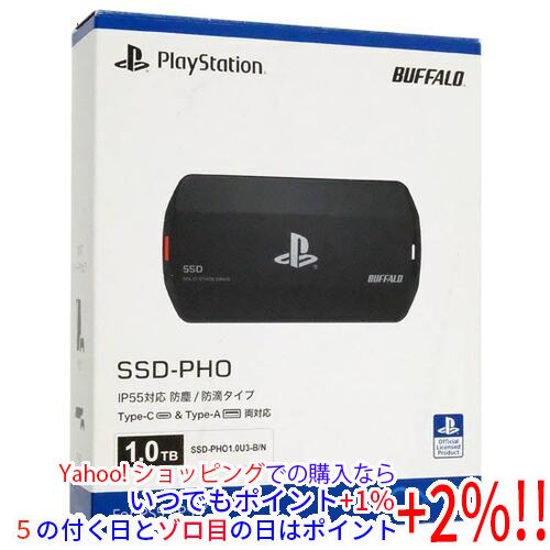 【商品名:】【新品(開封のみ)】 BUFFALO 外付けSSD SSD-PHO1.0U3-B/N 1.0TB ブラック / 【商品状態:】新品です。 / 【検索用キーワード:】≪バッファロー≫ SSD-PHO1.0U3-B/N [ブラック] / 【型番:】 SSD-PHO1.0U3-B [ブラック] / 【商品説明:】PlayStation5 公式ライセンス取得済商品 ポータブルSSD 高速モデル /