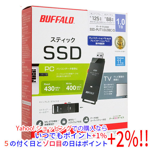 【新品(開封のみ・箱きず・やぶれ)】 BUFFALO バッファロー 外付けSSD SSD-PUT1.0U3BC/D ブラック