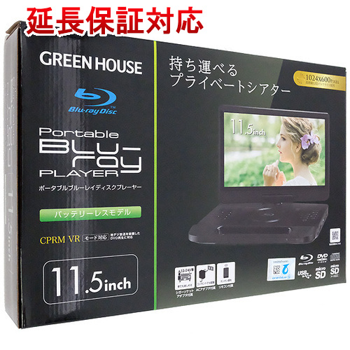 【商品名:】GREEN HOUSE 11型 ポータブルブルーレイディスクプレーヤー GH-PBD11CB-BK ブラック / 【商品状態:】新品 / 【検索用キーワード:】 GH-PBD11CB-BK / 【型番:】 GH-PBD11CB-BK [ブラック] / 【商品説明:】外出先でも美しい映像を楽しめる/ ポータブルブルーレイプレーヤー/ ・ バッテリーレスモデル/ ・ 180度回転して折りたためる大画面11.5型ワイド液晶(1024×600)搭載/ ・ 地デジを録画したブルーレイディスクやDVDも楽しめるBDAV・CPRM(VRモード)対応/ ・ AC-USBアダプタ、モバイルバッテリー、USBシガーソケットアダプタの3WAY電源に対応/ ・ 前回の続きから再生できるラストメモリー(レジューム)機能対応/ ※1件まで記憶可能です。設定で機能を「オン」にする必要があります。/ ・ microSD/microSDHC/USBメモリー対応/ ・ HDMI出力端子を搭載/ ・ 車内でも楽しめるUSBシガーソケットアダプタ付属(12/24V車専用)/ ・ 便利なリモコンが付属 /