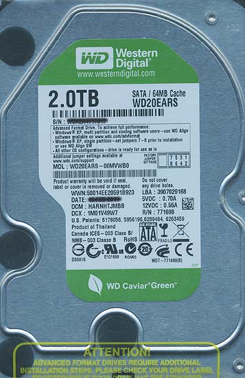 Western Digital製HDD WD20EARS 2TB SATA300 |