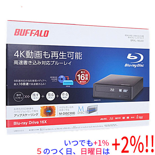 | BUFFALO 4K動画再生対応 外付けブルーレイドライブ BRXL-16U3V | |