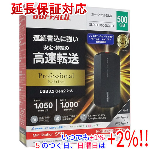 | BUFFALO 外付けSSD SSD-PHP500U3-BA 500GB ブラック | |