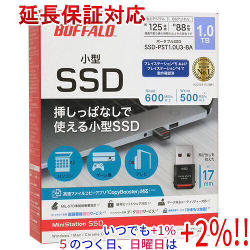 | BUFFALO 超小型ポータブルSSD SSD-PST1.0U3-BA ブラック 1TB | |