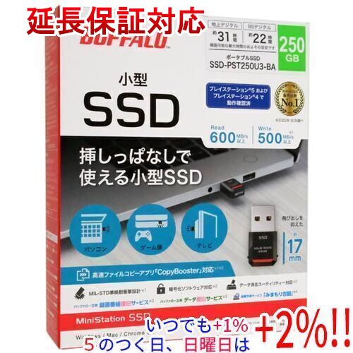| BUFFALO 超小型ポータブルSSD SSD-PST250U3-BA ブラック 250GB | |