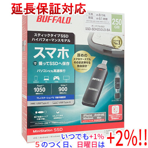 | BUFFALO スティック型SSD SSD-SDH250U3-BA 250GB ブラック | |