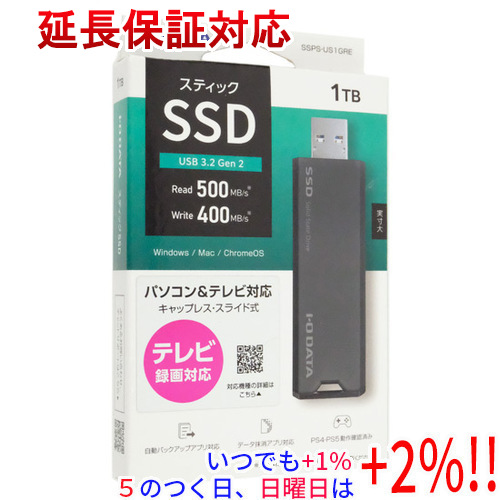 | I-O DATA USB 10Gbps(USB 3.2 Gen2)対応 スティックSSD SSPS-US1GRE グレー×ブラック 1TB | |