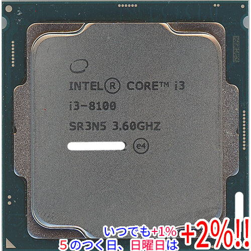 | 仕様 | [スペック] プロセッサ名 Core i3 8100/(Coffee Lake-S) クロック周波数 3.6GHz ソケット形状 LGA1151 三次キャッシュ 6 MB TDP 65 W コア数 4 コア |