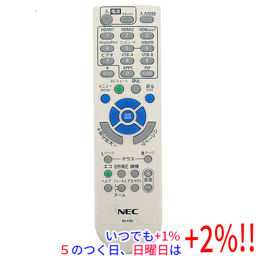 NEC プロジェクター用リモコン RD-478J 電池カバーなし