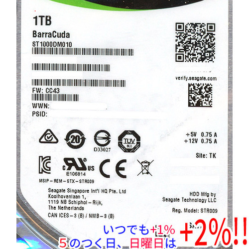 | 型番 | ST1000DM010 [1TB SATA600 7200] |