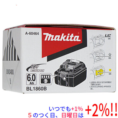 【商品名:】マキタ リチウムイオンバッテリー 6Ah BL1860B A-60464 雪マーク付き / 【商品状態:】新品です。 / 【検索用キーワード:】≪makita 18V 6.0Ah その他の工具≫ BL1860B / 【型番:】A-60464 /