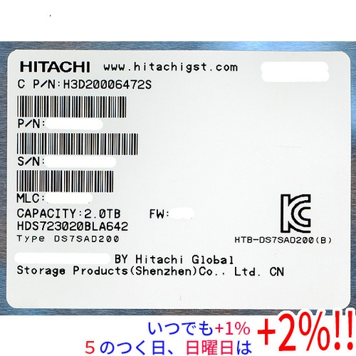 | 型番 | HDS723020BLA642 |