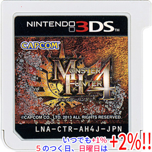 【商品名:】モンスターハンター4 3DS ソフトのみ / 【商品状態:】開封済みの中古品です。※ソフトのみの出品です。//※本商品は、製品の性質上、返品はお受けできませんのでご了承ください。 / 【検索用キーワード:】≪カプコン ニンテンドー3DS≫ モンスターハンター4 [3DS] /