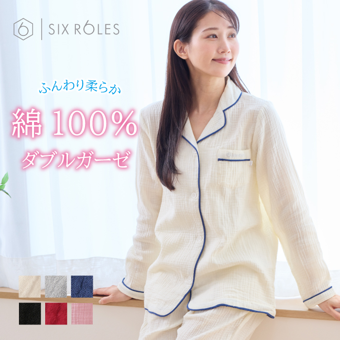 人気のSIX ROLES【ダブルガーゼパイピングパジャマ】・楊柳ダブルガーゼは柔らかく肌触り抜群