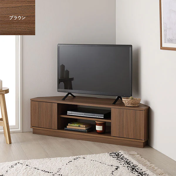 Luxen コーナーテレビボード 幅110cm(ブラウン/茶/BR/木目調)角置き 耐荷重50kg テレビ台 ローボード TV台 コードスリット コード穴 開き扉 可動棚 収納 RASIK