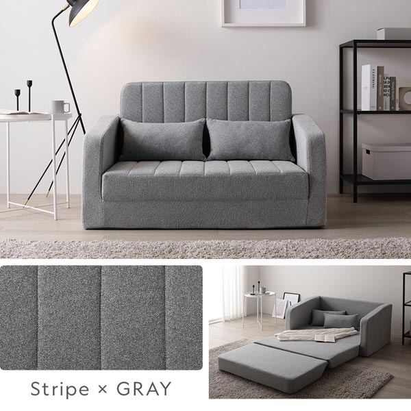 Restio 3WAY ソファベッド 2人掛け(グレー/灰色/GY/ストライプキルト)アームソファ カウチ 簡易ベッド 高反発ウレタン 体圧分散 肘付き レスティオ RASIK