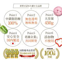 | MCTオイル (中鎖脂肪酸)はココナッツや母乳などに含まれる天然成分です | 中鎖脂肪酸のみを贅沢に100%抽出した純度100%のピュアオイルです。中鎖脂肪酸は一般の食物油とは消化経路が異なり、すぐに消化吸収し短時間でエネルギーに変えてくれるという特徴があります。 |