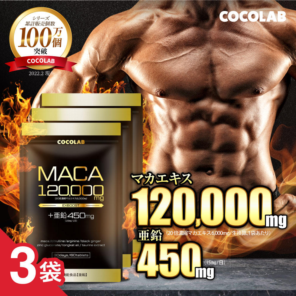 (まとめ買いSALE)(3袋セット) マカ 亜鉛 サプリ マカ120000mg 亜鉛450mg(15mg/日) サプリメント シトルリン アルギニン 日本製 30日分 COCOLAB