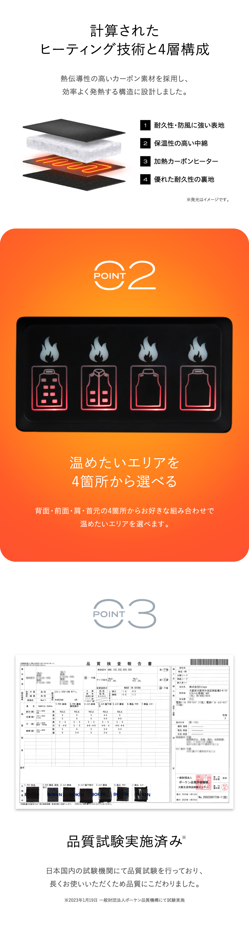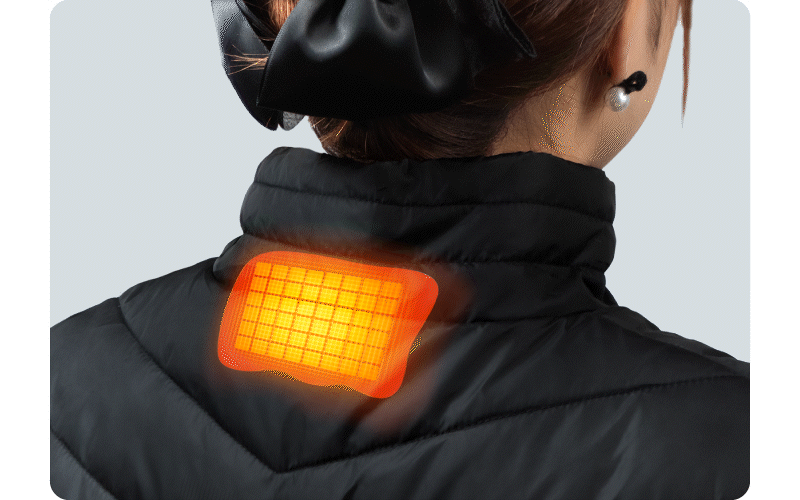 首・肩・前面・背面を中心に17箇所ヒーター内蔵。