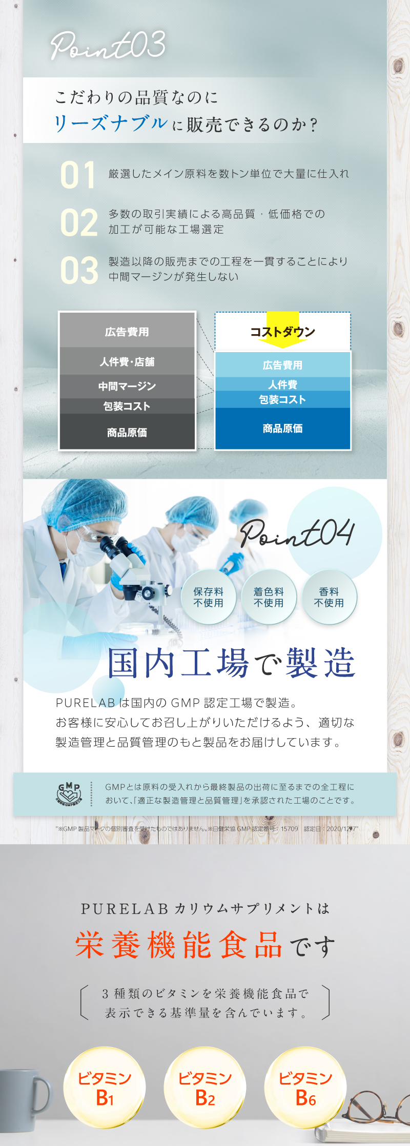 原料選びから製造、出荷まで国内GMP認定工場で行い、徹底した品質管理を実施しています。