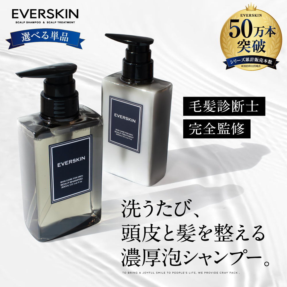 シャンプー メンズ トリートメント 単品 (毛髪診断士監修) スカルプシャンプー アミノ酸シャンプー シャンプー スカルプケア 美容室専売 300ml EVERSKIN