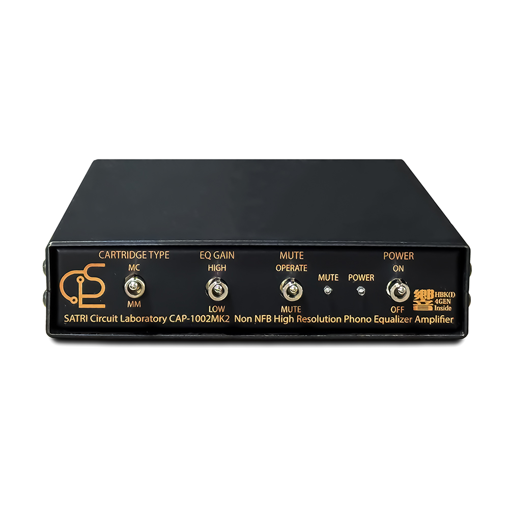 CAP-1002MK2での最大の進化は、同社が開発した回路「響(HIBIKI)」が初代から一挙に第4世代へと進化したことです。回路精度は飛躍的に高まり、入力インピーダンスは従来の半分以下に低減。特にMCカートリッジを電流入力で使用する際には圧倒的な効果を発揮し、よりストレートで濁りのない再生が可能となりました。CAP-1002MK2は無帰還アンプながら、増幅度そのものがRIAAカーブになるという独自原理を採用。クリップなどの問題が発生せず安定した動作を実現します。さらに出力電流が大きいMCカートリッジを組み合わせることで、従来のイコライザーアンプでは得られなかった大きなS/N比を達成し、雑音の少ないクリアで鮮明な再生を可能にします。MMカートリッジだけでなく、出力電圧の小さいMCカートリッジでも第4世代「響」回路によって雑音を抑えつつ最大限の情報を引き出します。