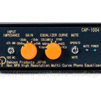 CAP-1004は、現在標準のRIAAと古いイコライザカーブのNAB, COLUMBIA, FFRR, AES, OLD RCAの6種類のカーブを搭載したイコライザーアンプです。イコライザカーブが違う古いアナログディスクの本来のサウンドを手軽に再生できるように開発しました。MM, MCカートリッジの切り替えに加え、イコライザーのゲインを使用するカートリッジによって四段階に切り替え可能です。0dBでは出力電圧が小さいMCカートリッジを、出力電圧が10mVを超えるような大出力カートリッジに は-30dBを使用します。電源はモバイル用のUSB充電器やモバイルバッテリーが使用できます。モバイルバッテリーを使いますと、ノイズなどの影響を受けませんので、CAP-1004を最高の状態で動作させることが出来ます。
