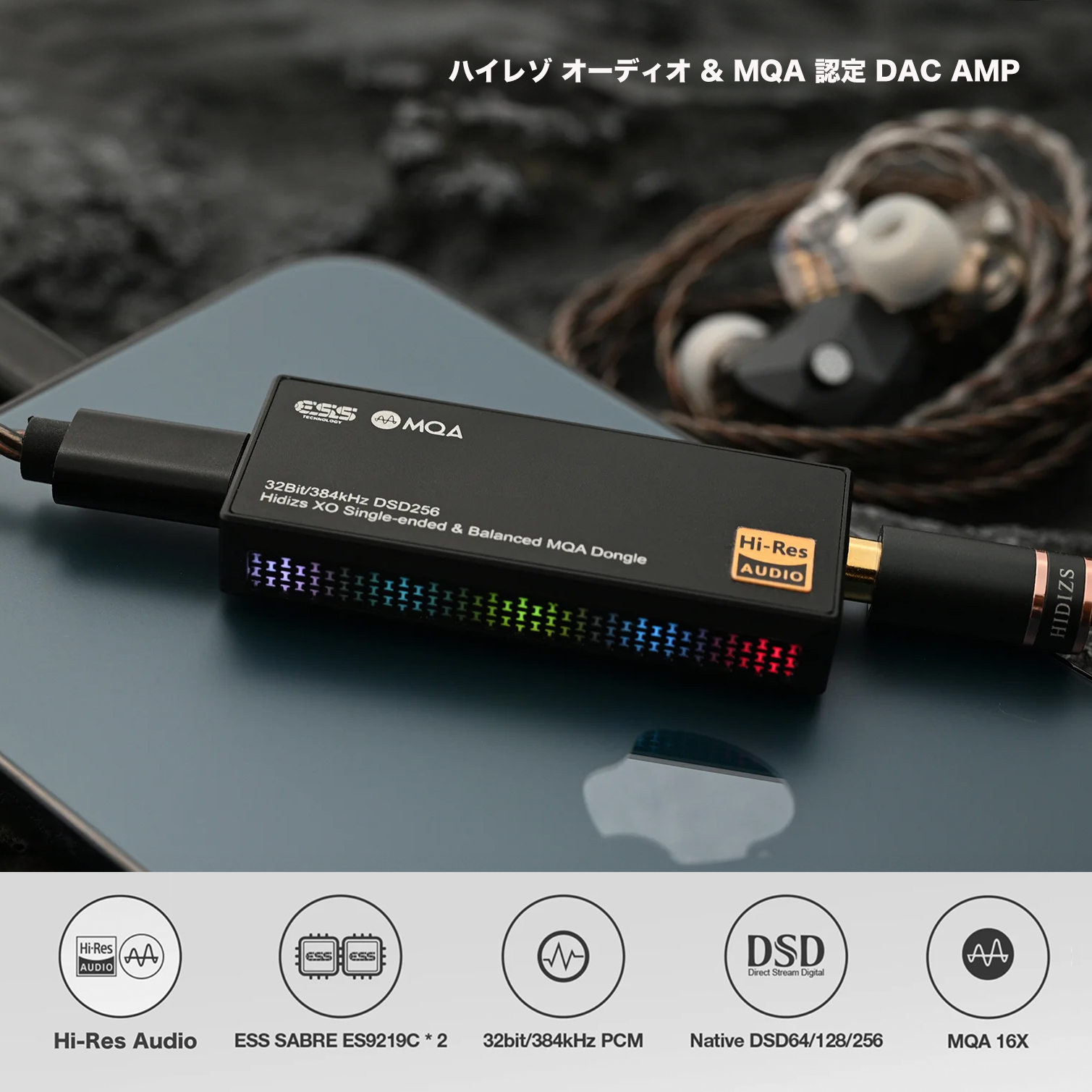アンプ ヘッドホンアンプ DACアンプ Hidizs XO DACドングル ネイティブMQA, PCM, DSD対応 ハイレゾ認定 バランス & シングルエンド