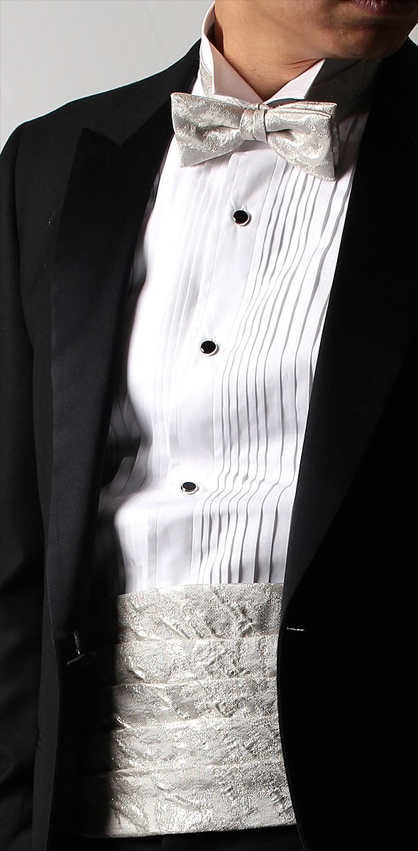 西陣織オーダーカマーバンド&蝶ネクタイ ウェーブシルバーホワイト